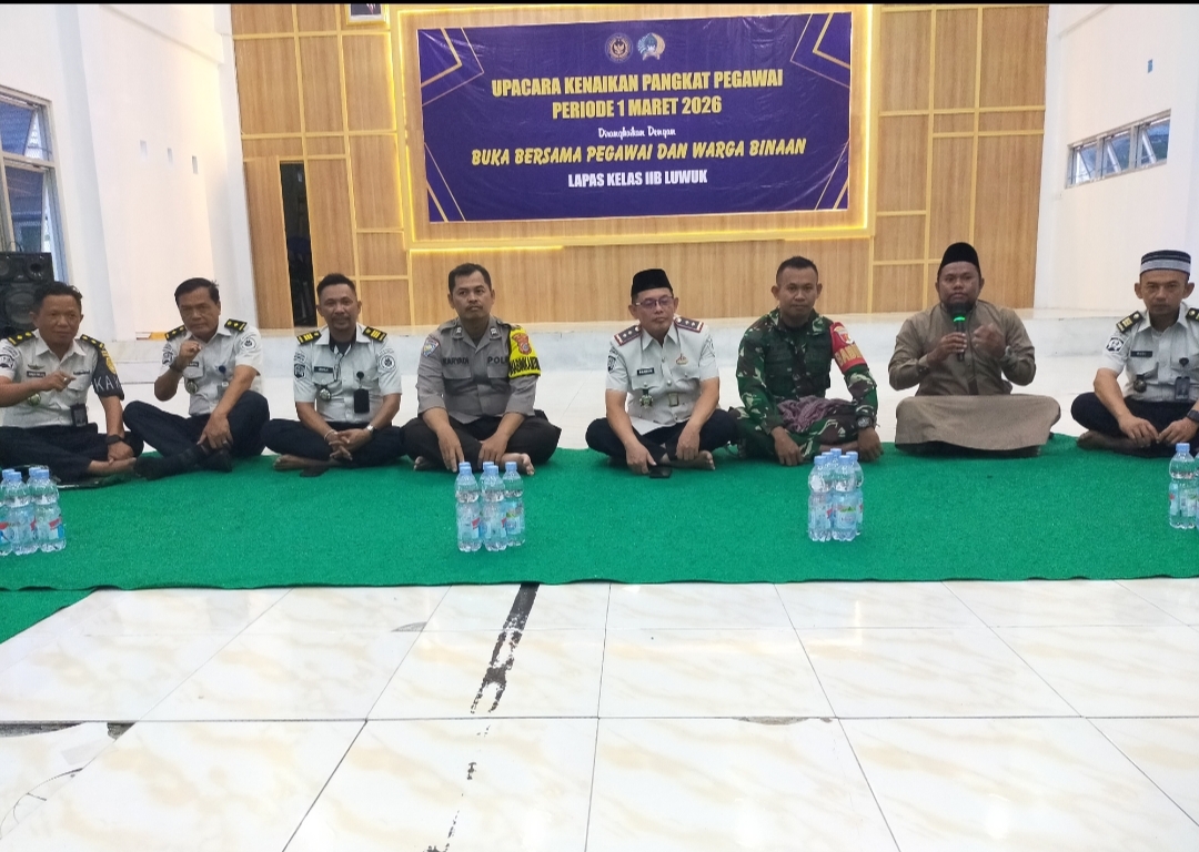 KABAR BANGGAI – Lembaga Pemasyarakatan (Lapas) Kelas II B Luwuk menggelar kegiatan buka puasa bersama sebagai bentuk rasa syukur atas kenaikan pangkat sejumlah pegawai.