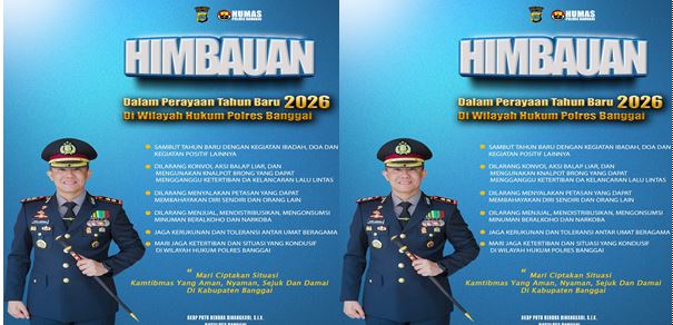 KABAR BANGGAI – Menjelang pergantian tahun, Polres Banggai mengeluarkan himbauan kepada masyarakat untuk merayakan Tahun Baru 2026 dengan aman, tertib, dan penuh kedamaian.