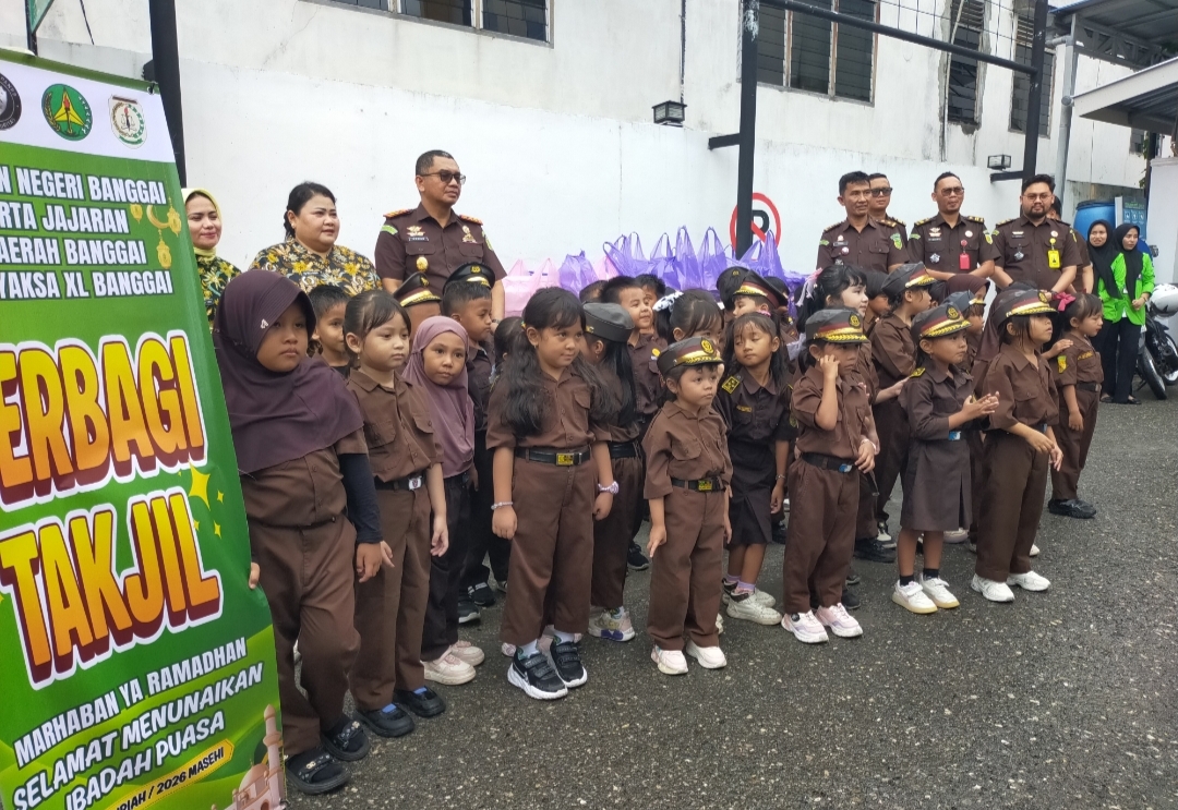 Bersama Ikatan Adhyaksa Dharmakarini Daerah Banggai dan para siswa TK Adhyaksa XL Banggai, kegiatan sosial berbagi takjil gratis digelar pada Senin, 9 Maret 2026.