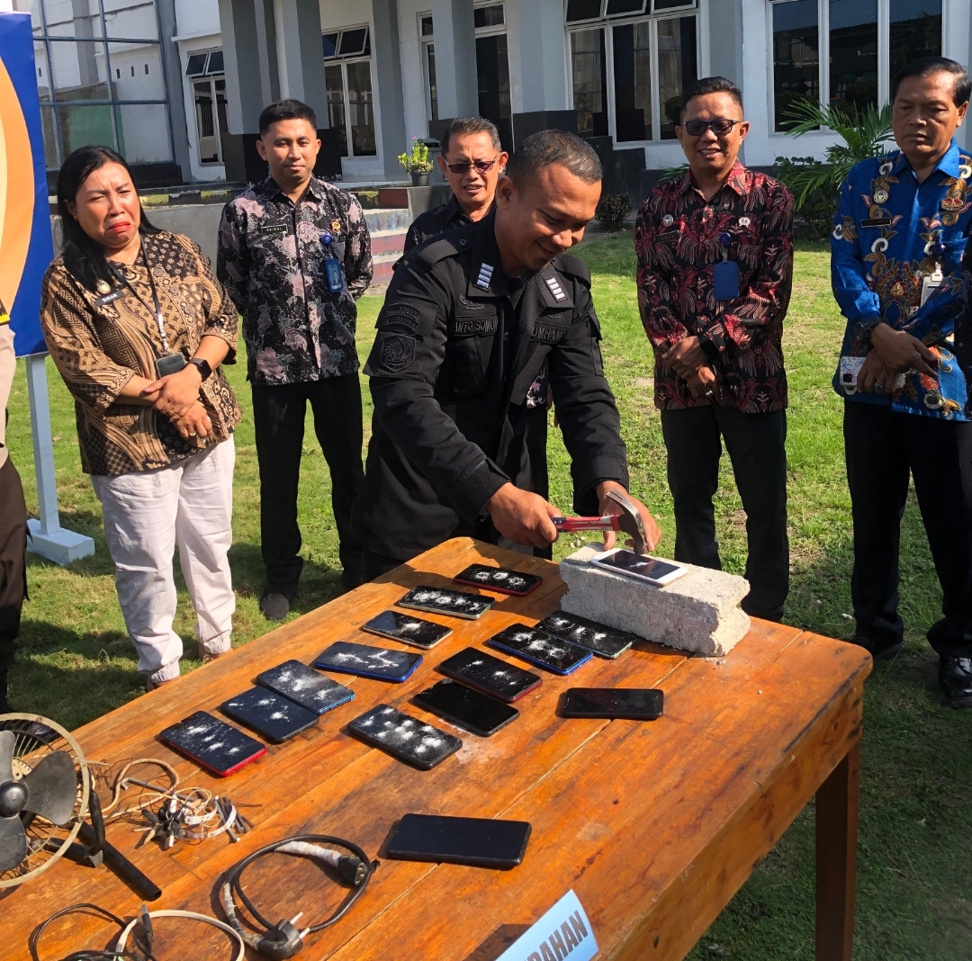 Kalapas Luwuk bersama pejabat eselon IV dan V, petugas kepolisian, pegawai staf, serta regu jaga menghancurkan seluruh handphone menggunakan martil dan diceburkan ke aquarium berisi air garam, agar perangkat tersebut tidak bisa digunakan kembali.