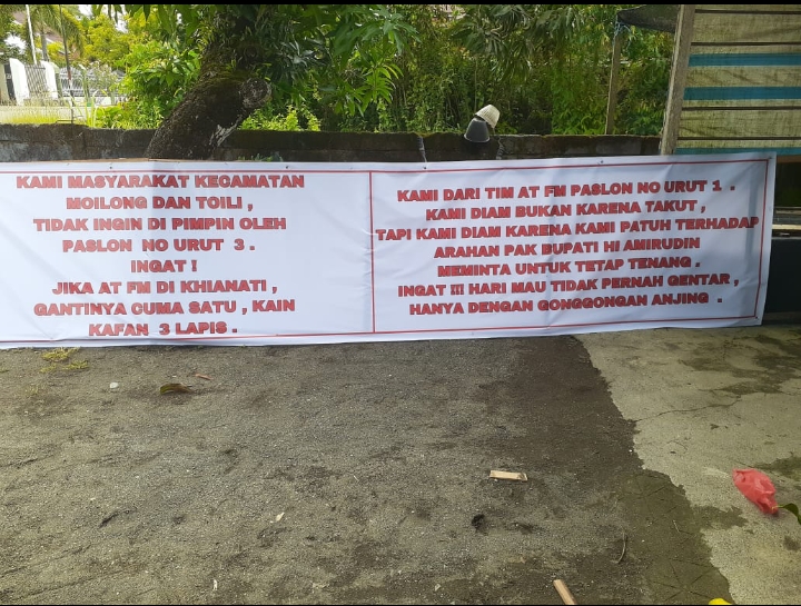 KABAR BANGGAI – Tim hukum pasangan calon (Paslon) nomor urut 03 melaporkan adanya tindakan teror dan intimidasi berupa penyebaran spanduk yang dinilai merugikan serta mengancam keamanan tim dan pendukung mereka.