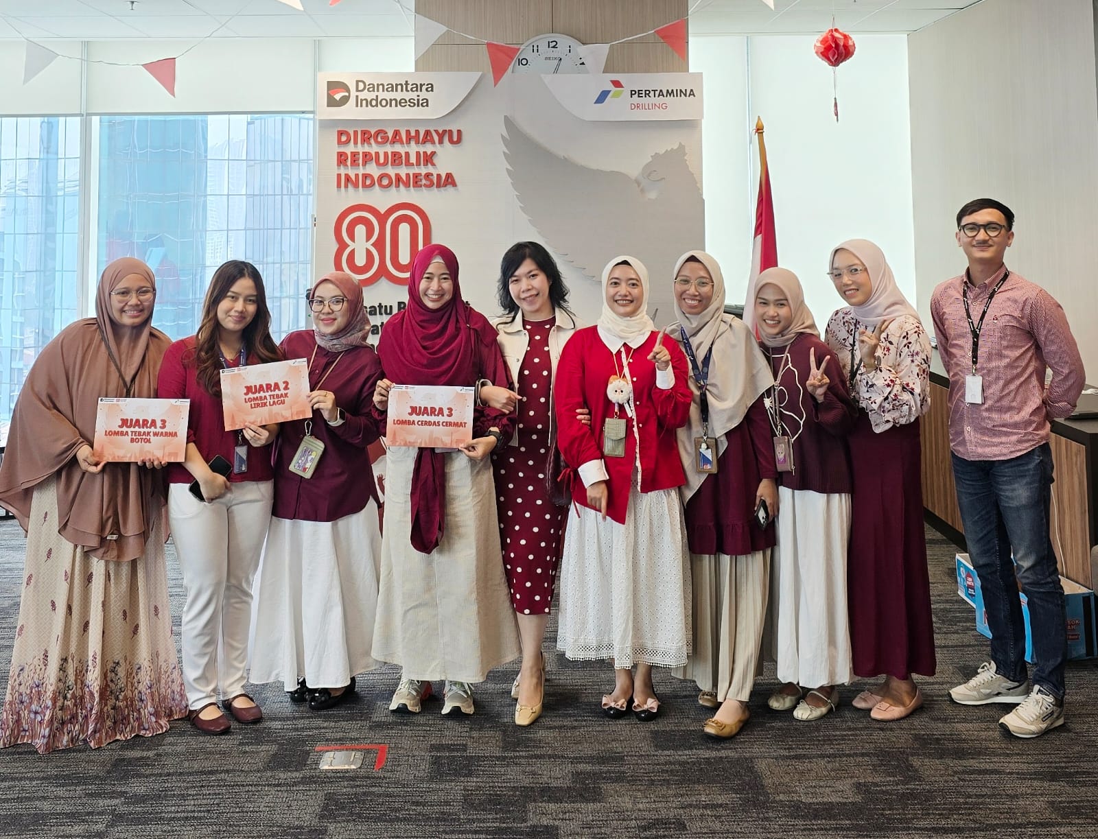 Sejak pagi, para pekerja datang dengan mengenakan pakaian bernuansa merah putih, sebagian lainnya tampil dalam busana adat dari berbagai daerah di Indonesia. Nuansa keberagaman dan persatuan tampak menyatu di kantor pusat Pertamina Drilling, Jakarta.