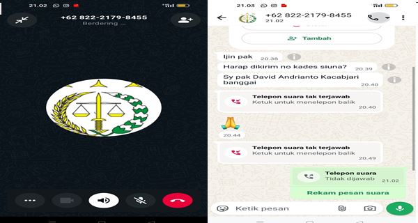 KABAR BANGGAI  – Belum genap satu hari sejak beredarnya kabar penangkapan mantan Kepala Desa (Kades) Siuna, sebuah insiden percobaan penipuan mulai meresahkan masyarakat. Hanya dalam hitungan menit setelah informasi hukum tersebut mencuat, oknum tidak bertanggung jawab dilaporkan mulai melancarkan aksi dengan mencatut nama Kepala Cabang Kejaksaan Negeri (Kacabjari) Pagimana. Jum,at 6 Februari 2026.